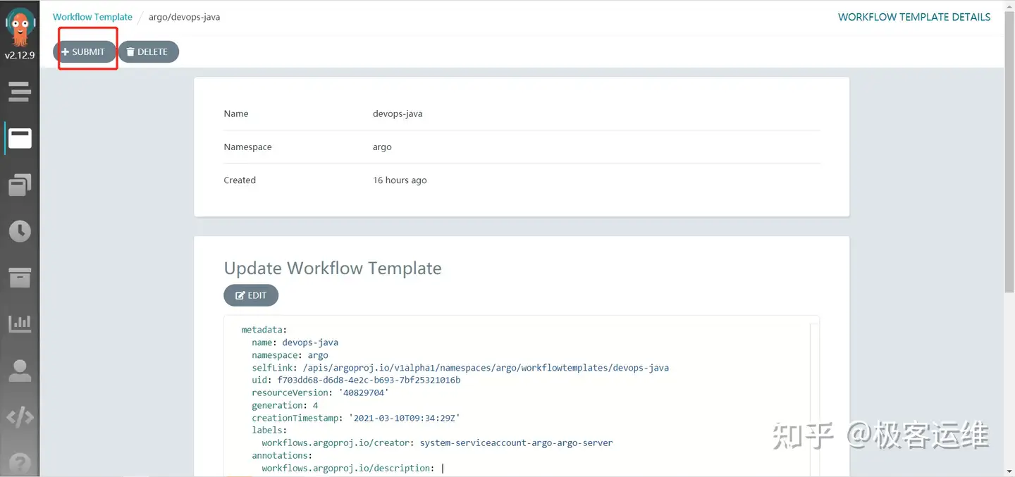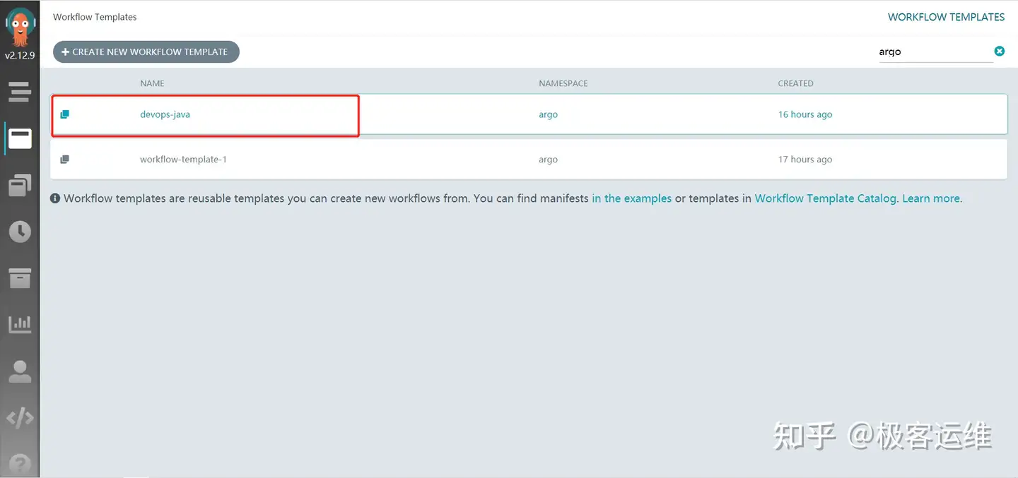 创建完成后,可以在 UI 界面看到刚创建的 WorkflowTemplate,如下: