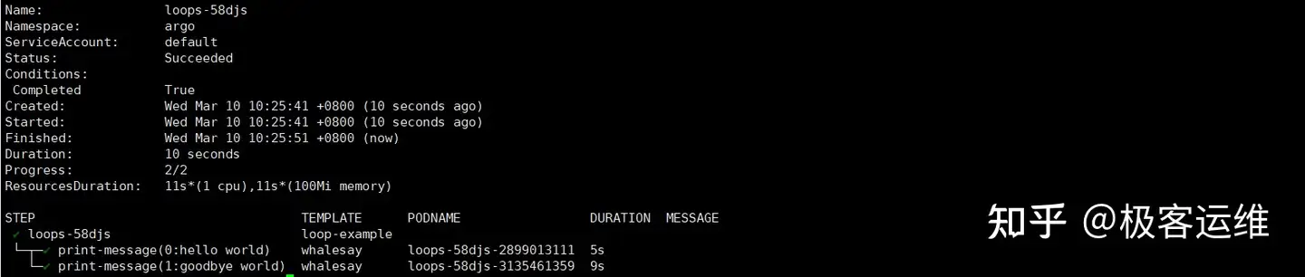 使用如下命令创建并观察 workflow。