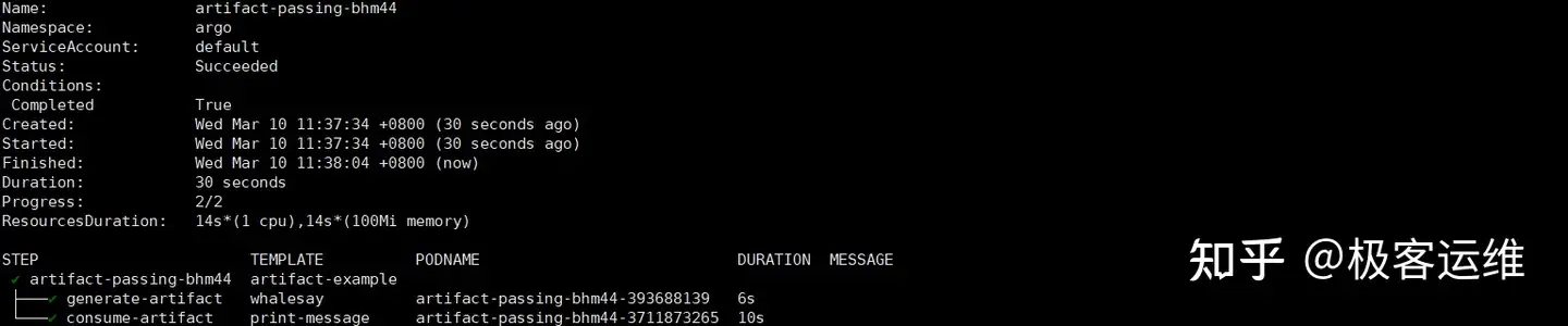 也可以在命令行界面看到 Workflow 的执行结果,如下: