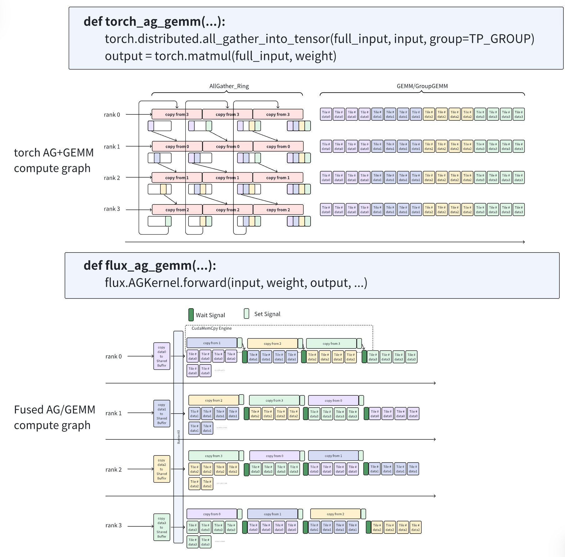 - 一个编译器,可以生成联合优化通信和计算的 GPU Kernel。