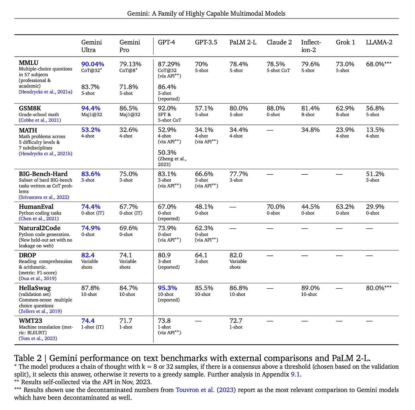 12 月的另一个热点是 Google DeepMind 的 Gemini 模型141516,Genimi 一开始就专注于多模态并展示了令人印象深刻的音频、视频和图像识别能力,尽管其语言和代码性能更强。