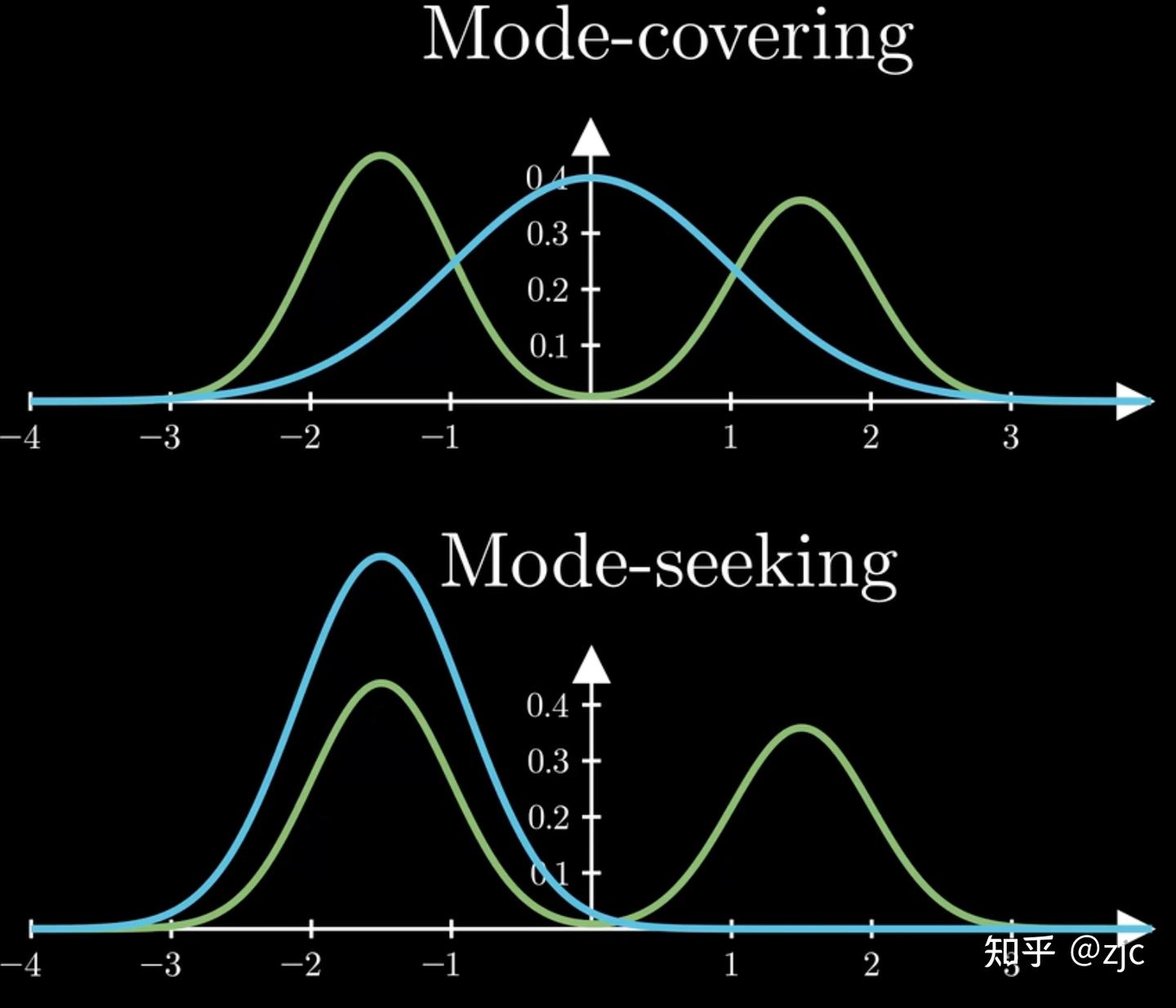 $Q_{\theta}(X)$ 平均概率高的地方,$P(X)$ 概率也要高。倾向于去覆盖 $P(x)$ 最高的峰,同时加上熵约束,防止出现坍缩。